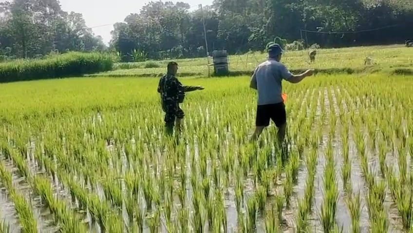Serka Rudi Harianto menyampaikan bahwa pemupukan merupakan tahap krusial dalam siklus tanam untuk memastikan pertumbuhan padi yang optimal. “Kami ingin memastikan bahwa petani di wilayah binaan kami, seperti Bapak Sutopo, dapat melakukan perawatan tanaman dengan maksimal. Jika pemupukan dilakukan tepat waktu dan merata, kita berharap hasil panen nanti bisa melimpah sehingga kesejahteraan petani pun meningkat,” ujar Serka Rudi di sela-sela kegiatannya.