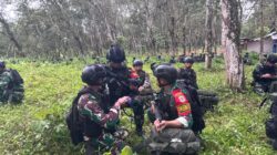 Puncak Jaya – Satgas Pamtas Kewilayahan Yonif 715/Motuliato mengajak jajaran Aparat Keamanan (Apkam) yang ada di Puncak Jaya, bersama dengan seluruh elemen masyarakat di Puncak Jaya, Papua Tengah, mengibarkan bendera Merah Putih raksasa di bukit zaitun pada Kamis (01/05/2025).