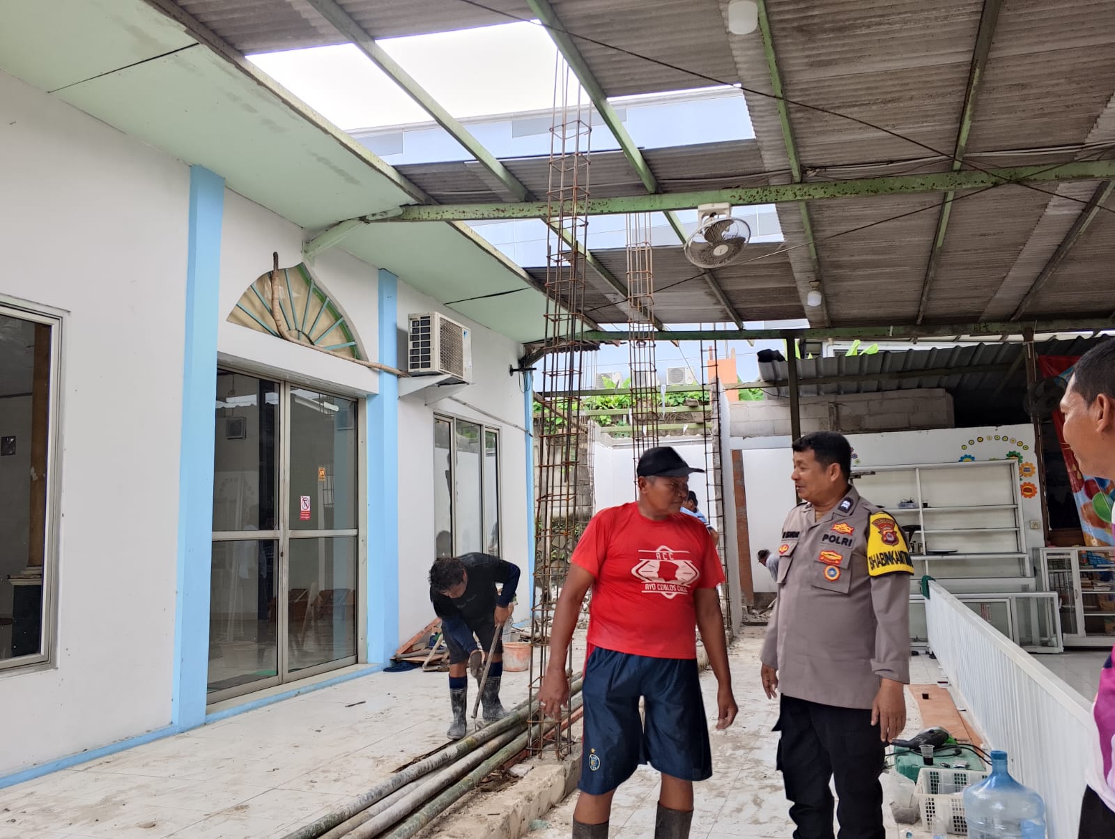 Dalam kegiatan tersebut, Bhabinkamtibmas bersama Babinsa turut membantu proses pembangunan mushola sekaligus menjalin komunikasi yang baik dengan masyarakat melalui penyampaian himbauan kamtibmas.