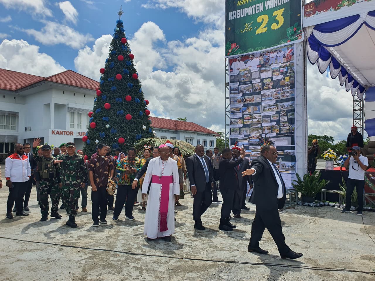 Yahukimo, jejakperistiwa.id – Komandan Kodim 1715/Yahukimo Letkol Inf Didiet Trilaksono, S.M.,M.H.I. menghadiri acara peringatan HUT ke-23 Kab. Yahukimo dan Natal Bersama Kab. Yahukimo bertempat di kantor Bupati Yahukimo, Distrik Dekai Kab. Yahukimo, Kamis (11/12/2025).