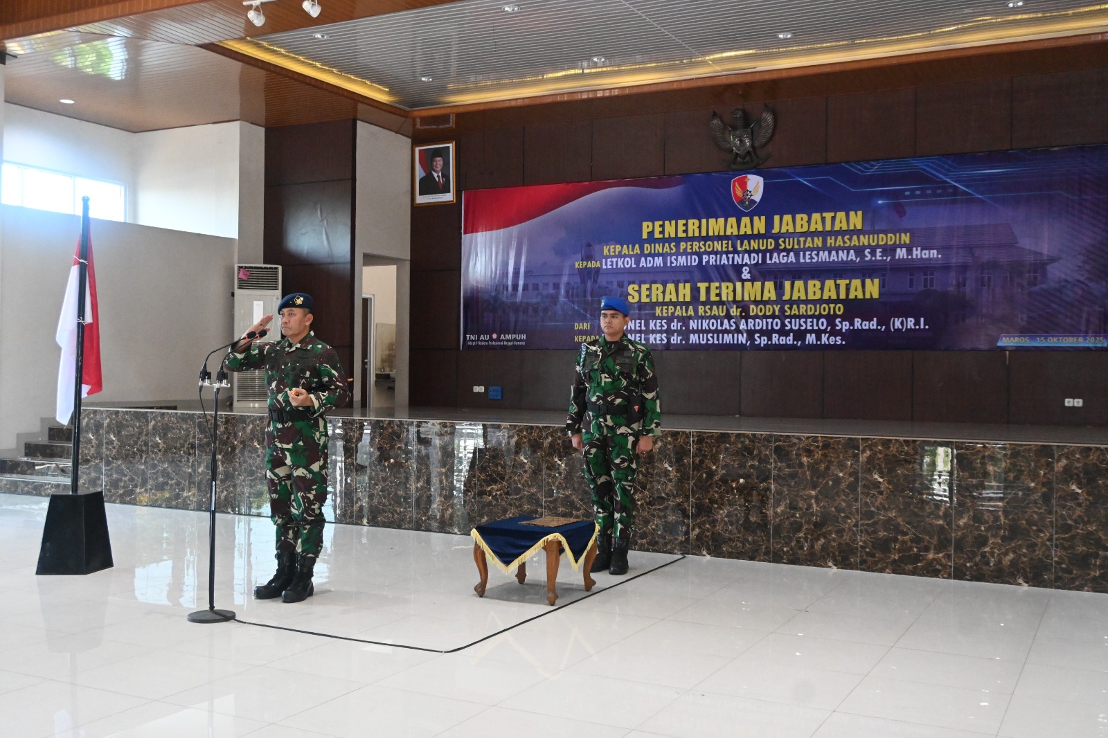 Pada acara ini, secara resmi jabatan Kadispers Lanud Sultan Hasanuddin diserahkan kepada Letkol Adm Ismid Priatnadi Laga Lesmana, S.E., M.Han. dan jabatan Kepala RSAU dr. Dody Sardjoto diserahterimakan dari Kolonel kes dr. Nikolas Ardito Suselo, Sp.Rad., (K)R.I., kepada penggantinya Kolonel Kes dr. Muslimin, Sp.Rad., M.Kes.,
