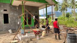 Halmahera Timur – Babinsa Koramil 1505-03/Maba Kodim 1505/Tidore, Serda M. Awal La Ode, turut serta membantu warga dalam pembangunan rumah di Desa Dorolamo, Kecamatan Maba Tengah, Kabupaten Halmahera Timur, Minggu(16/2/2025).