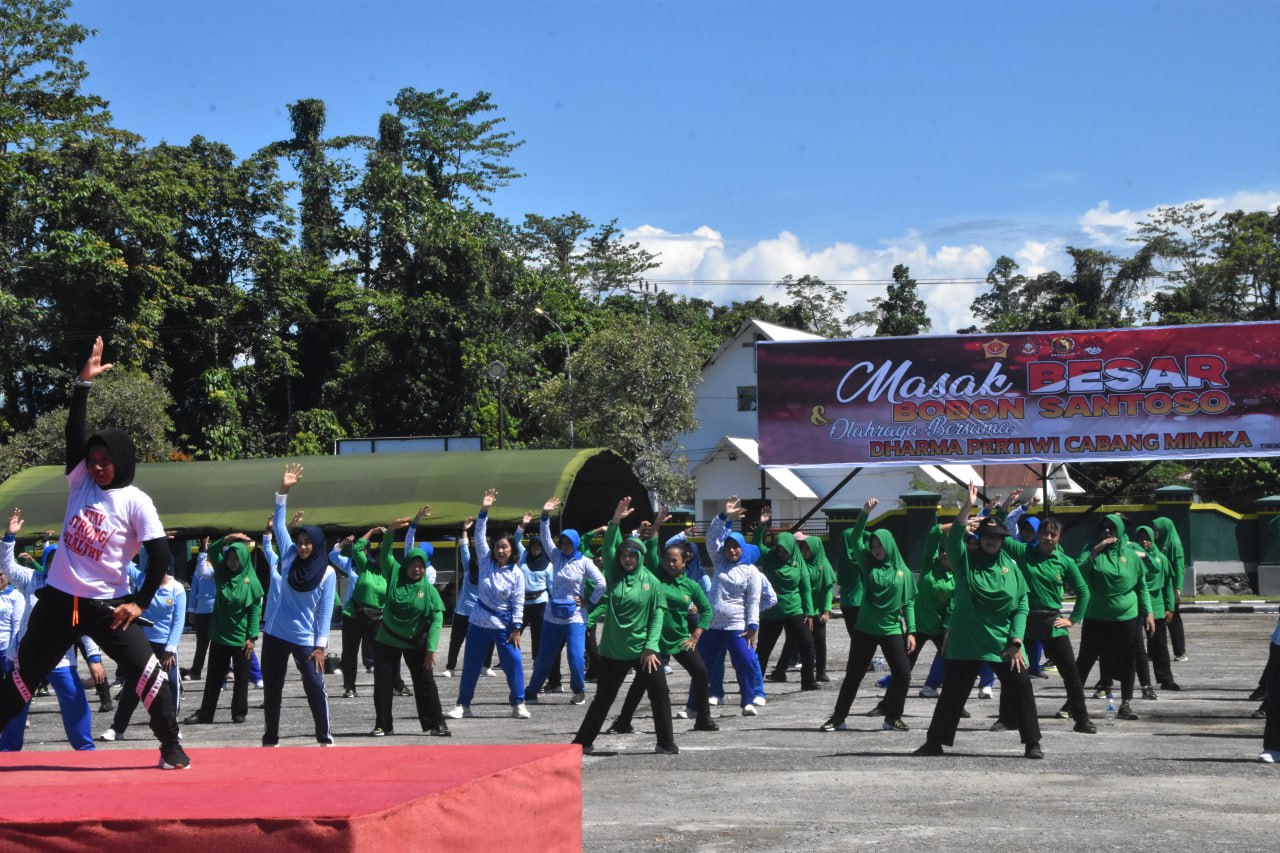 Dalam keterangannya, Dandim 1710/Mimika Letkol Inf M. Slamet Wijaya, S.Sos,. M.Han,.M.A. mengucapkan terima kasih kepada Bobon Santoso telah berkenan hadir melalui kegiatan Masak Besar Bobon Santoso dan Olahraga Bersama Dharma Pertiwi Cabang Mimika.