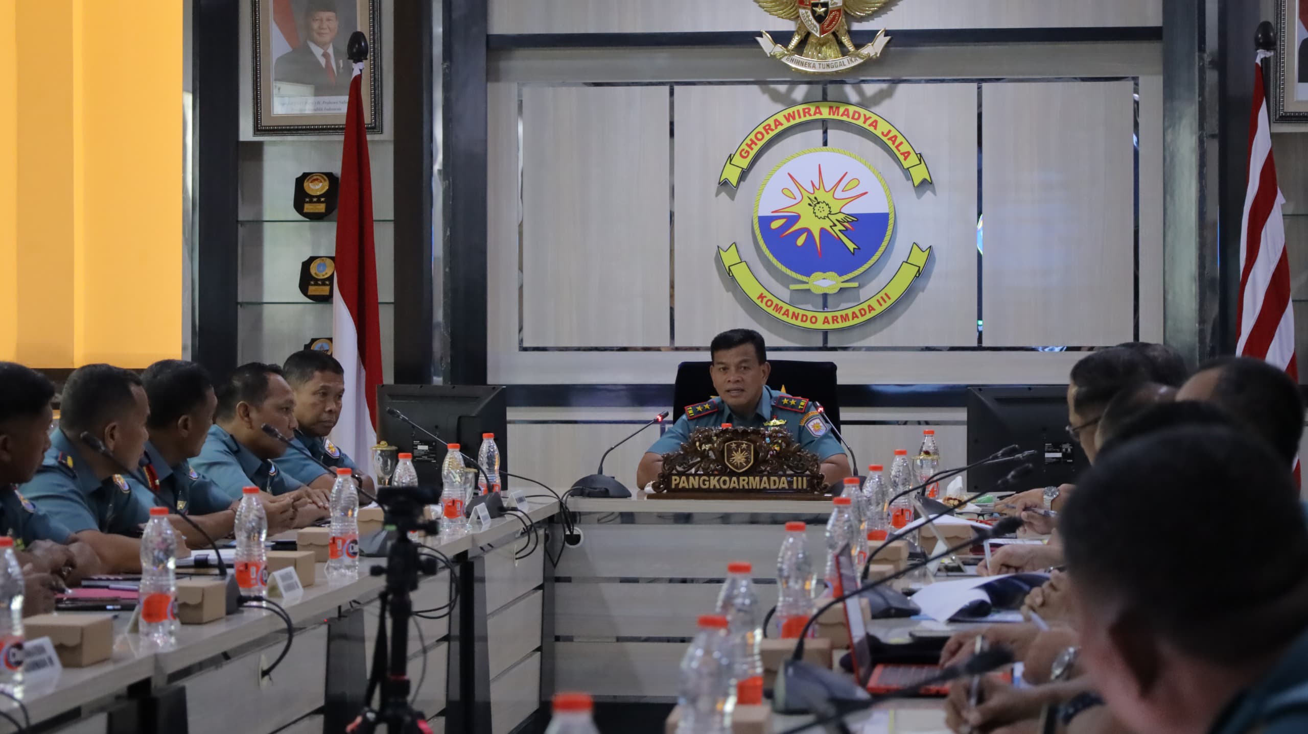 Kabupaten Sorong — Panglima Armada III Laksamana Muda TNI Dato Rusman SN, S.E., M.Si., M.Tr.Opsla., memimpin langsung rapat Weekly Review edisi Minggu Ke-4, (26/01/2026) yang digelar di Ruang Rapat Panglima Armada III. Kegiatan ini diikuti oleh Kepala Staf Armada III, Ir Armada III, Kapoksahli Pangarmada III, Komandan Guspurla Armada III, Komandan Guskamla Armada III, para Pejabat Utama (PJU), serta para Kepala Satuan Kerja (Kasatker) jajaran Armada III.
