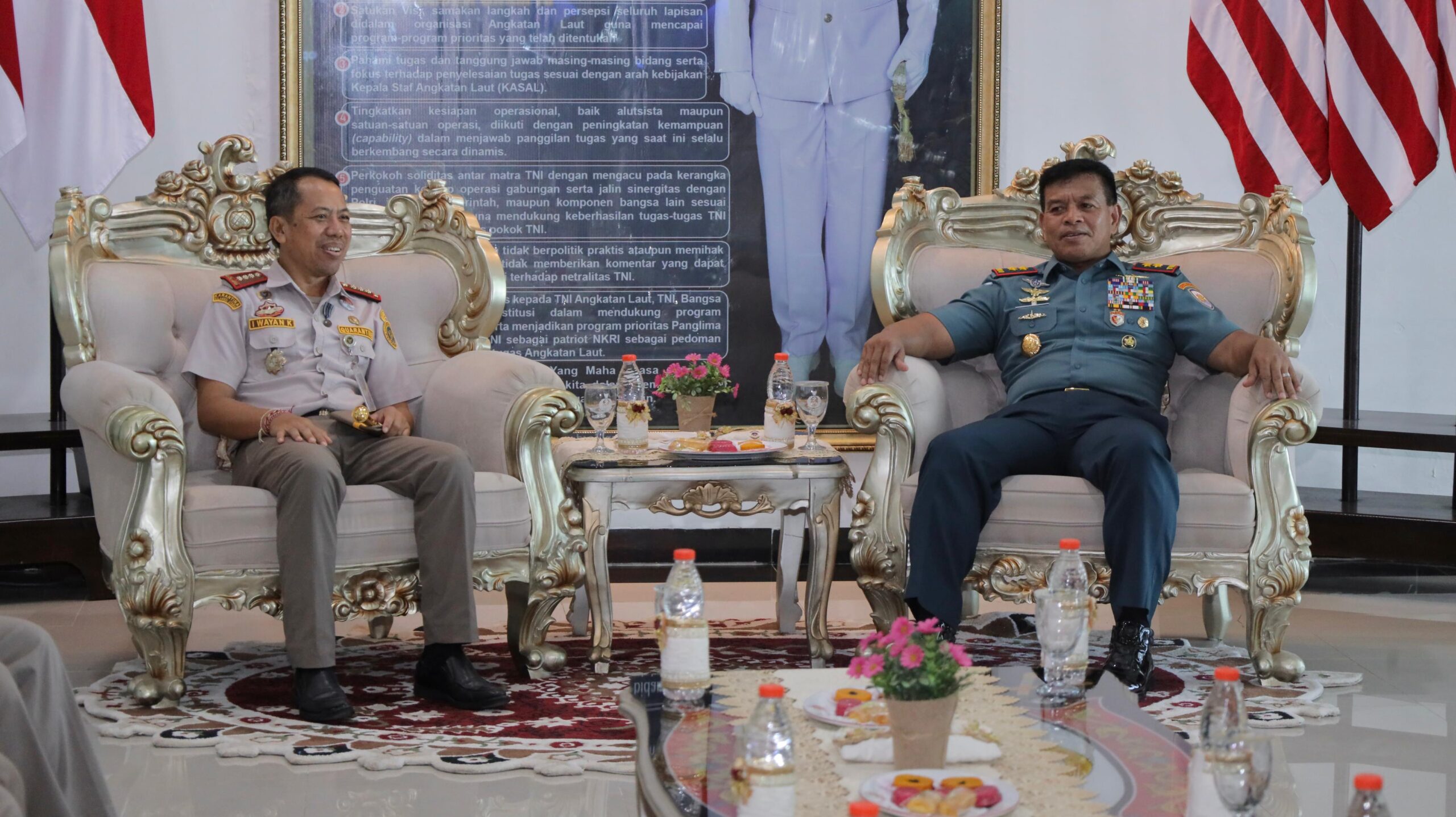 Dalam menerima kunjungan tersebut, Panglima Armada III turut didampingi oleh Kepala Staf Armada III, Inspektur Armada III, Asisten Operasi Pangarmada III, dan Asisten Intelijen Pangarmada III. Sementara itu, Kepala Balai Karantina Hewan, Ikan, dan Tumbuhan Provinsi Papua Barat Daya didampingi oleh Ketua Tim Kerja Penegakan Hukum, Ketua Tim Karantina Ikan, Ketua Tim Karantina Tumbuhan, serta Ketua Tim Kerja Karantina Hewan,