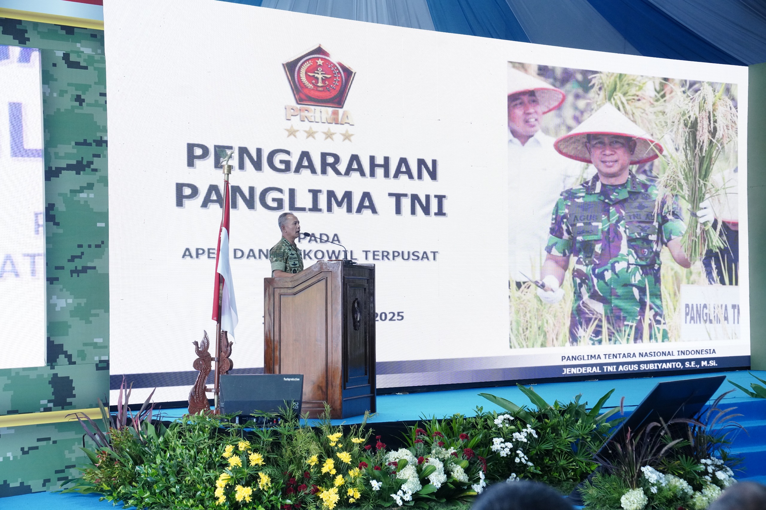 Jateng – Kepala Staf Umum (Kasum) TNI Letjen TNI Richard Tampubolon mewakili Panglima TNI Jenderal TNI Agus Subiyanto memberikan ceramah kepada para peserta Apel Komandan Satuan Komando Kewilayahan (Dansatkowil) Terpusat Tahun 2025 yang digelar di Banyumas, Jawa Tengah, Kamis (13/11/2025).