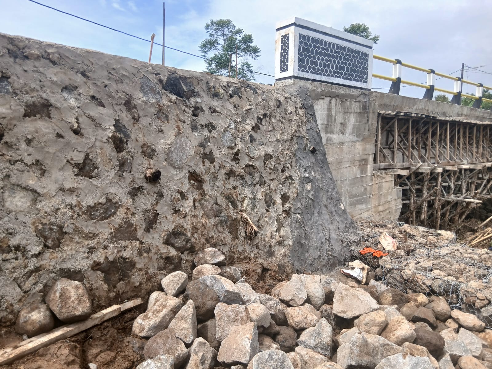 “Pada Minggu, 18 Januari 2026, dilakukan penggalian di bibir sungai untuk dudukan pasangan bronjong, tepat di bawah dan di samping dinding abutment jembatan. Namun posisi galian terlalu dekat dengan dudukan pasangan batu belah talud,” ujar Bowo, Rabu (21/1/2026).