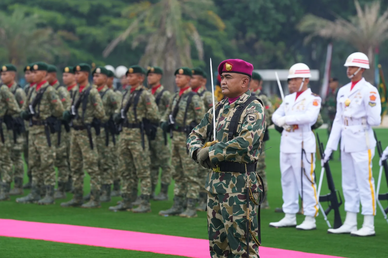 Jakarta – Panglima TNI Jenderal TNI Agus Subiyanto menerima kunjungan kehormatan (courtesy call) dari Chief of the Defence Staff of the Canadian Armed Forces (CAF), Jenderal Jennie Carignan, di Markas Besar TNI, Cilangkap, Jakarta Timur, Senin (25/8/2025). Kunjungan resmi ini diawali dengan prosesi jajar kehormatan dan upacara penyambutan militer.