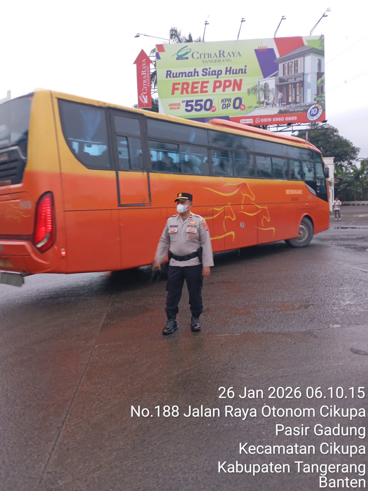 Cikupa, Tangerang — Dalam rangka memberikan pelayanan prima kepada masyarakat serta menciptakan keamanan, keselamatan, ketertiban, dan kelancaran lalu lintas (kamseltibcar lantas), Polsek Cikupa melaksanakan kegiatan pengaturan lalu lintas pagi hari di Perempatan Lampu Merah Cikupa Mas, Senin (26/1/2026).