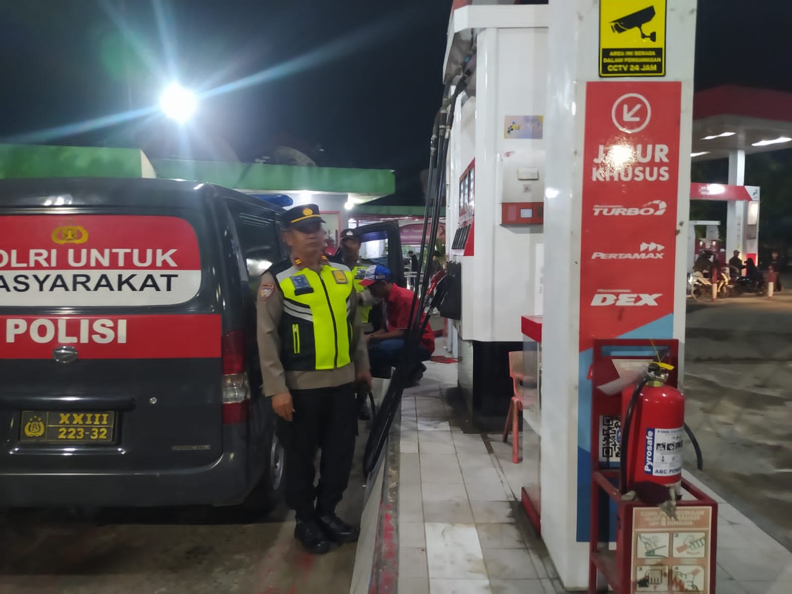 Dalam pelaksanaannya, petugas melakukan pengecekan langsung terhadap stok BBM di SPBU 34-15702 yang beroperasi selama 24 jam, sekaligus berinteraksi dengan pengawas SPBU, Kasman, serta masyarakat yang sedang melakukan pengisian bahan bakar.