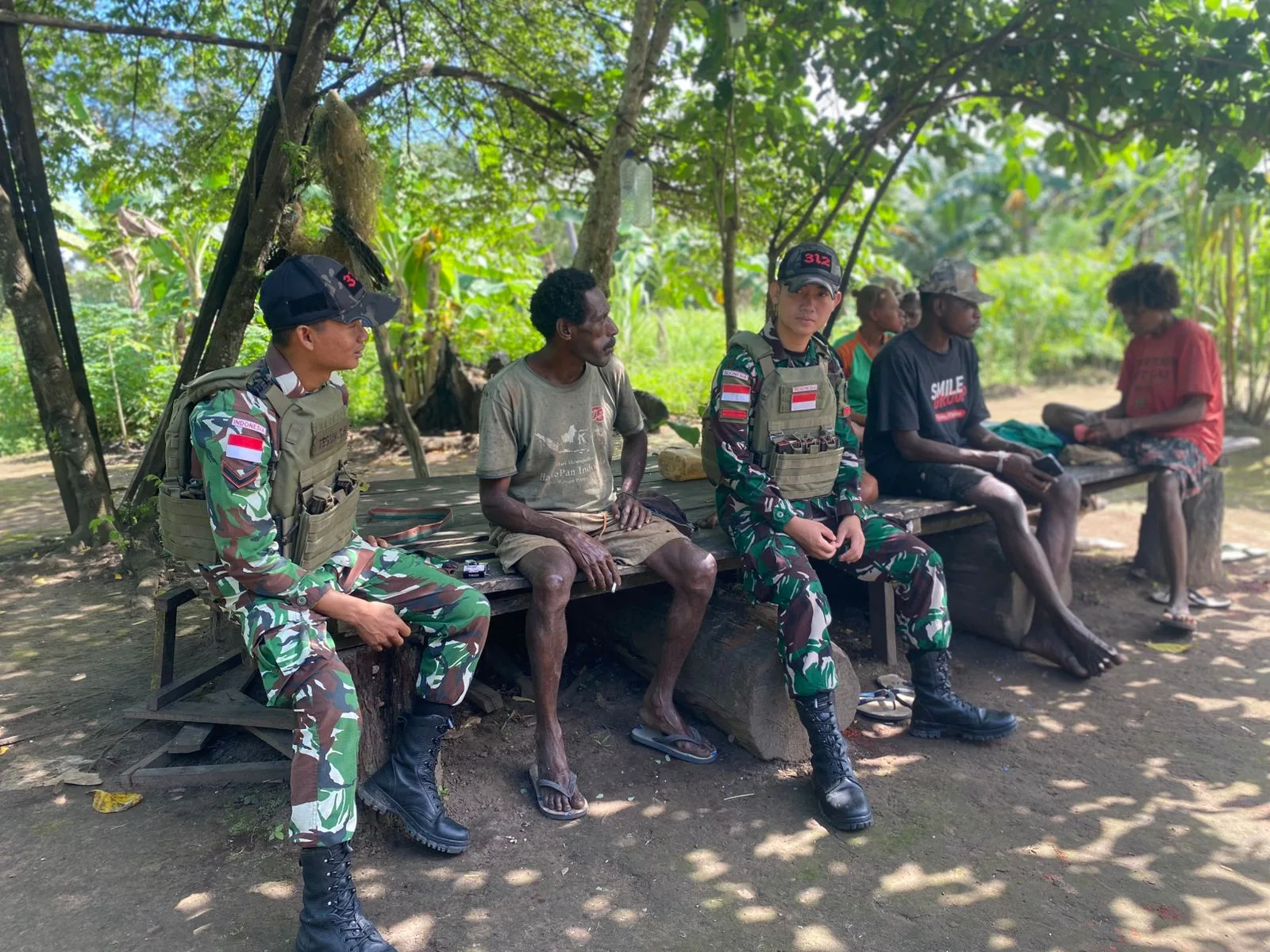 Dalam pertemuan tersebut, prajurit Satgas menyempatkan waktu untuk berbincang santai dengan warga terkait perkembangan situasi di Kampung Rawabiru. Obrolan hangat yang terjalin menjadi sarana saling bertukar informasi, baik mengenai keamanan wilayah, kondisi sosial masyarakat, maupun kebutuhan dan harapan warga setempat.