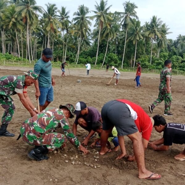 Tikep_Babinsa Koramil 1505-04/Oba di bawah pimpinan Danramil Lettu Inf Ibrahim Tuhulele melaksanakan kegiatan kerja bakti…