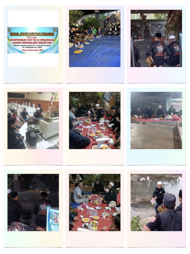 Tuban — Di bawah langit Tuban yang teduh pada 22 November 2025, ratusan keluarga besar Laskar Ronggolawe Nusantara (LRN) berkumpul dengan penuh ketulusan di kompleks Makam Dandang Wacono, Desa Prunggahan Wetan, Kecamatan Semanding. Peringatan HUT ke-22 LRN tahun ini terasa sangat istimewa, karena tidak hanya menandai perjalanan organisasi, tetapi juga menjadi momen suci untuk mengenang dan mendoakan para leluhur serta saudara-saudari yang telah berpulang.