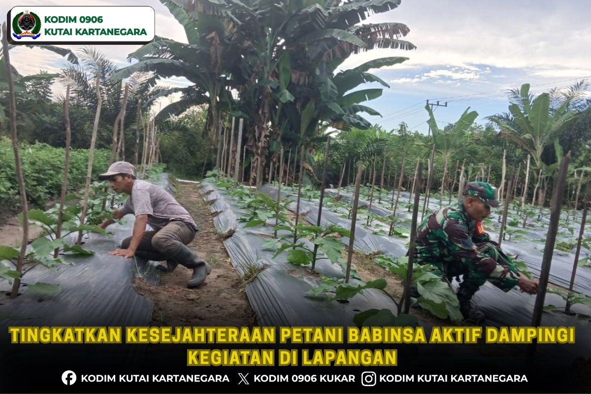 Kutai Kartanegara. jejakperistiwa.id- Dalam mendukung meningkatkan kesejahteraan petani yang ada di wilayah binaan, anggota Babinsa Koramil 0906-08/Muara Kaman Serma Makbul melakukan pendampingan kepada petani terong yang berada di wilayah binaan tepatnya rt 08 Desa Muara Kaman Ulu Kecamatan Muara Kaman, Senin 20/4/26.