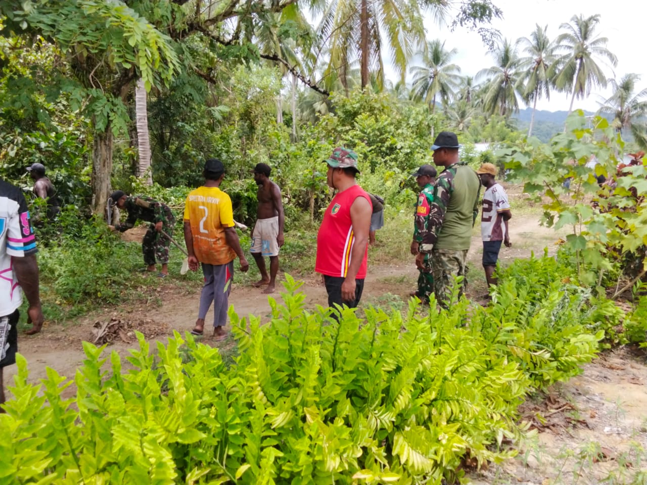 Kegiatan yang melibatkan personel Kodim 1804/Kaimana tersebut menjadi salah satu rangkaian program fisik TMMD yang difokuskan pada peningkatan kualitas lingkungan dan infrastruktur desa. Sejak pagi hari, aparat TNI dan masyarakat tampak bahu-membahu mengangkat sampah, memangkas rumput liar, hingga merapikan parit di sepanjang ruas jalan kampung.