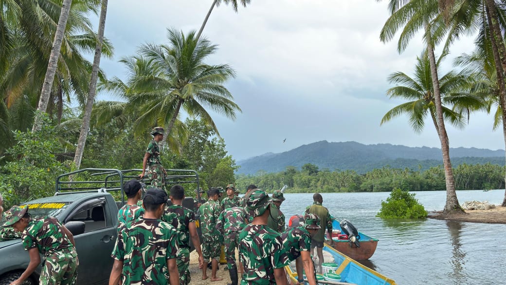 Dalam upaya memastikan seluruh tahapan pembangunan berjalan sesuai target, personel TNI bersama masyarakat setempat bahu-membahu mengangkut berbagai kebutuhan material bangunan dari Kampung Marsi menuju Kampung Sisir. Pengiriman dilakukan menggunakan perahu milik warga, sebagai solusi efektif mengingat akses darat yang terbatas serta kondisi geografis wilayah pesisir yang menantang.