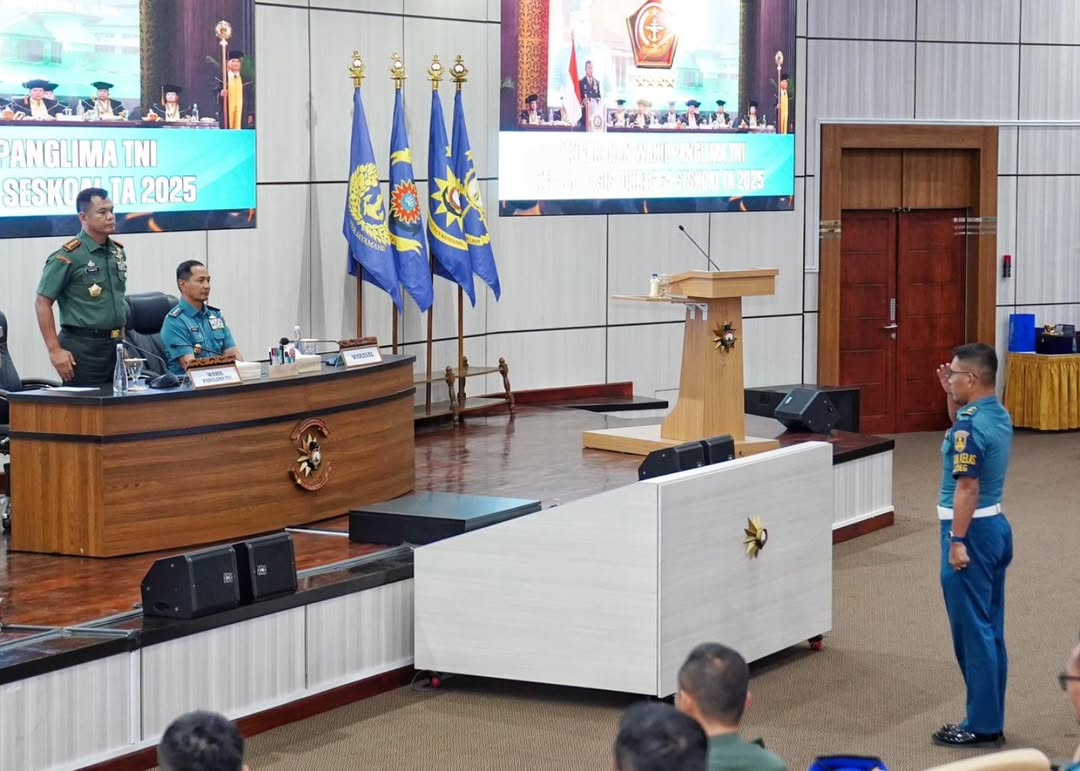 Jakarta – Wakil Panglima (Wapang) TNI Jenderal TNI Tandyo Budi R memberikan kuliah umum kepada Perwira Siswa (Pasis) Pendidikan Reguler Sekolah Staf dan Komando Angkatan Laut (Dikreg Seskoal) Angkatan ke-64 TA 2025 dengan materi “Kepemimpinan Militer di Masa Depan”, bertempat di Amphitheater Gedung Samadikun Seskoal, Cipulir, Jakarta Selatan, Kamis (23/10/2025).