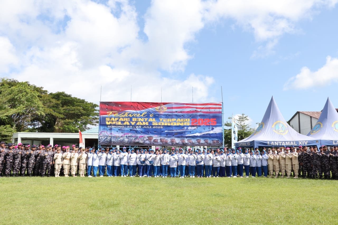Kota Sorong PBD(24/7/25) – Dalam rangka Festival dan Safari Bintal Terpadu Wilayah Sorong 2025, Prajurit Pangkalan Utama TNI Angkatan Laut (Lantamal) XIV Sorong, mengikuti rangkaian kegiatan Outbound, Cerdas Cermat, dan Talkshow yang diselenggarakan oleh Dinas Pembinaan Mental TNI Angkatan Laut (Disbintalal). Kegiatan tersebut dilaksanakan di Lapangan Mako Lantamal XIV, Jl. Bubara No.1, Klaligi, Distrik Sorong, Kota Sorong, Papua Barat Daya, (23/07).